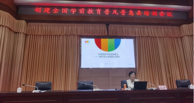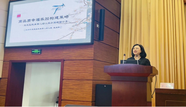 成都市双流区机关第二幼儿园园长王玉彬带来了《高品质幸福乐园建设策略》的专题讲座,详细向大家讲述了园所的办学理念、环境打造、教师队伍建设、家园合力等方面的经验和做法。