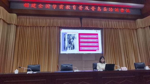 北川羌族自治县安昌幼儿园园长梁娟带来了《民族地区幼儿园游戏资源的开发利用》的专题讲座。梁园长结合羌族文化在办学中的有效渗透进行了细致的分享。