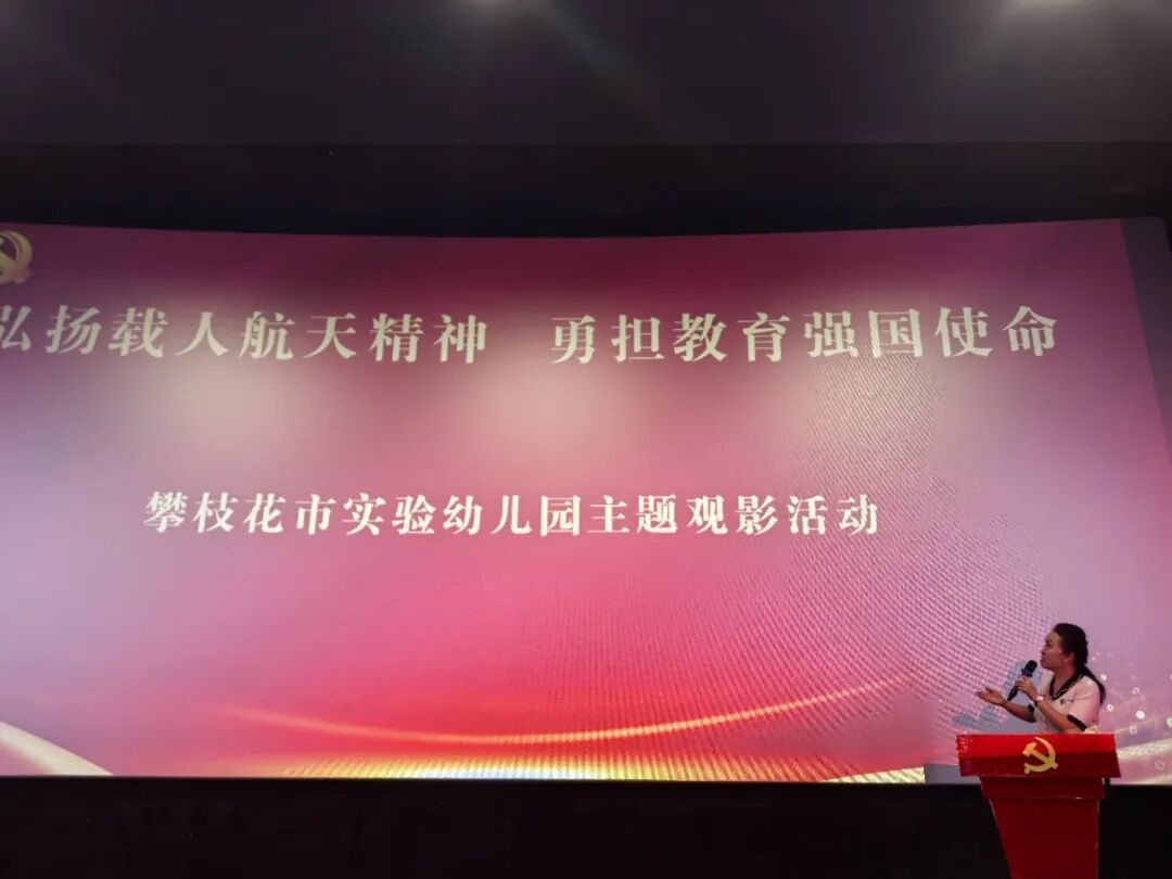 活动伊始,攀枝花市实验幼儿园党总支书记刁玲进行动员讲话,她指出该影片是一堂极具感染力的“电影党课”,生动诠释了“特别能吃苦、特别能战斗、特别能攻关、特别能奉献”的载人航天精神,这不仅是一部记录中国空间站建造历程的震撼纪录片,更是一堂生动的、写在苍穹之上的“特殊党课”。它让我们得以用航天员的视角,凝视我们共同的、蔚蓝色的家园,感受那份源自东方的骄傲与感动。