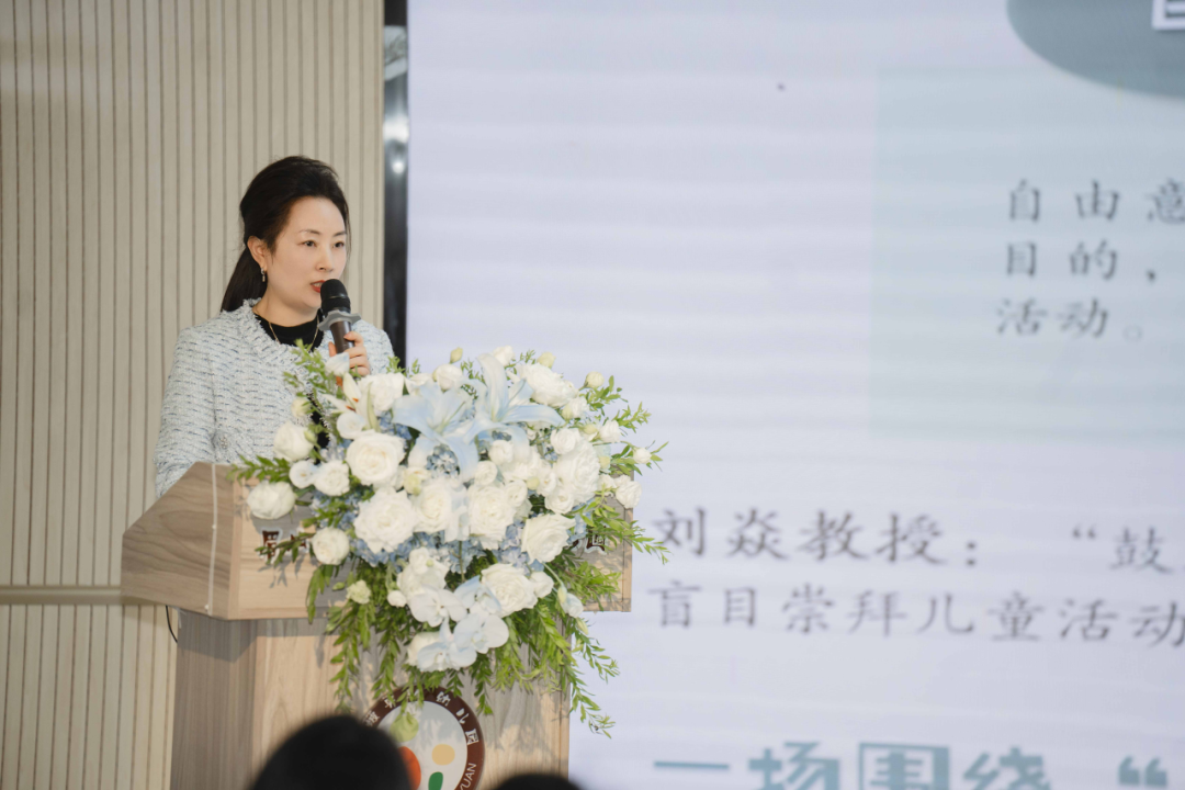 眉山市吴霞眉州名师工作室领衔人,青神县实验幼儿园党支部书记 、园长吴霞分享了《我们的这两年——户外自主游戏开展的思与行》。通过“三步走”策略推进改革:首先由管理层带领教师团队进行自我剖析,随后结合园所实际开展顶层设计,最后通过系统培训和教研全面启动自主游戏实践,有效实现了游戏课程的创新转型。