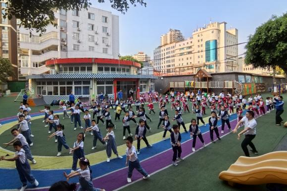 在早操观摩活动中,各班级充分展现了独具匠心的早操特色。孩子们在欢快的音乐声中,跟着教师的引导,认真地做着每一个动作,脸上洋溢着兴奋与快乐。