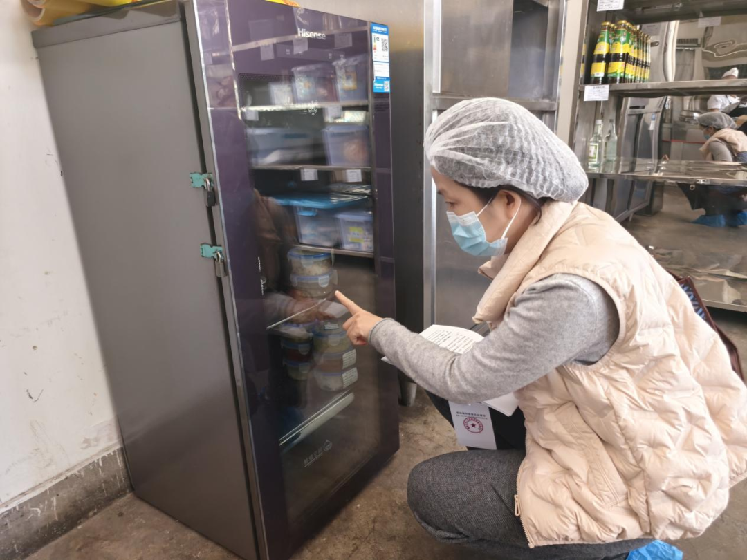 2月24日上午,攀枝花市东区市场监督管理局工作人员对我园人民街园区食堂进行专项检查,深入查看了食堂管理和食品安全管理的各个环节,对食材采购、查验、贮存、加工制作,餐点留样,食堂清洁消杀,责任人落实等情况进行详细了解。