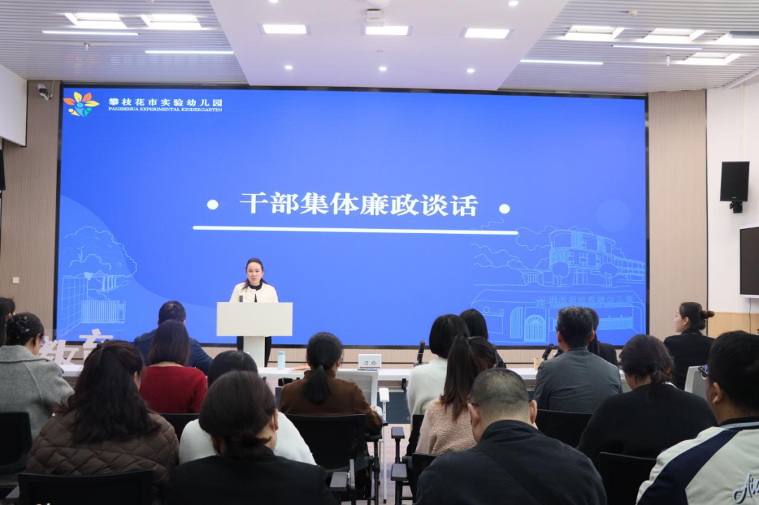 党总支书记刁玲对会议内容进行了总结,聚焦“五个建设”“四个创新”和“六个务必”,为新学期幼儿园的工作推进理清了思路、指明了方向,并提出了新的希望和要求。她指出,2025年是贯彻全国教育大会精神、落实教育强国建设规划纲要的关键之年,也是攀枝花建市60年。全体干部、职工必须认清发展形势,突出问题导向,上下一心,团结协作,奋力推进新学期各项工作落实落细、见行见效。力争在新一年的教育征程中交出属于攀实幼的漂亮答卷,以学前教育的高质量发展助力攀枝花共同富裕试验区的成功建设!随后,刁玲书记组织幼儿园全体干部进行了干部集体廉政谈话。