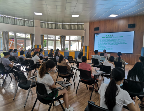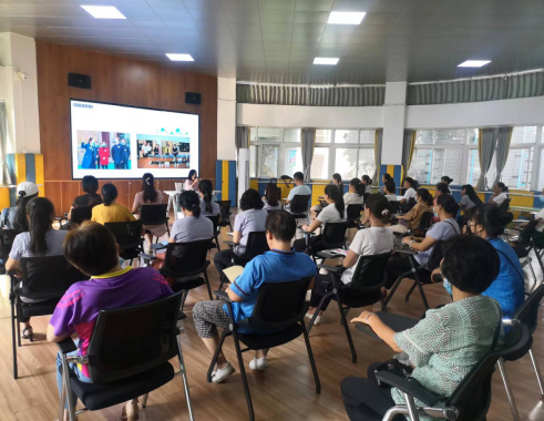 在新学期即将到来之际,为做好开学准备工作,为全园师生营造良好的工作学习环境。我园于8月20日对三园区保洁人员、食堂从业人员进行了卫生保洁和食品安全知识的培训。会议由邵坤玉副园长主持,各园区后勤主任和保健医生参加培训会。