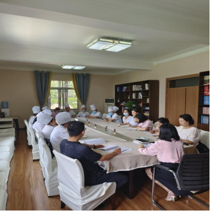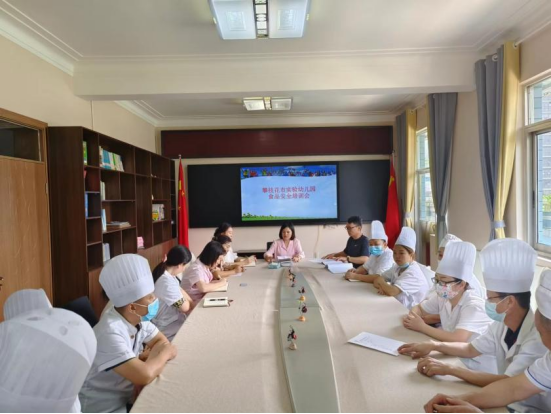 下午 ,在人幼园区组织全体食堂从业人员开展食品安全培训会。邵园长指出食品安全是安全工作的重中之重,关系到孩子的健康成长。要求食堂在保证食品安全的同时,还要注重对菜品质量的提升,要丰富菜品种类,有针对性提升蔬菜的烹饪水平,做到营养丰富、搭配合理。同时也要求食品安全员要认真履职,严格落实索票和进货查验制度,保证每日食材新鲜、健康、安全。让每一个在攀实幼的孩子吃得安全、吃得健康、吃得满意。